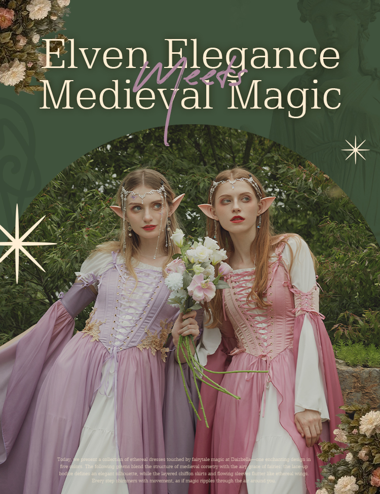 Medieval Renaissance Costume Elf Style Dress with Sleeves Cosplay Costume