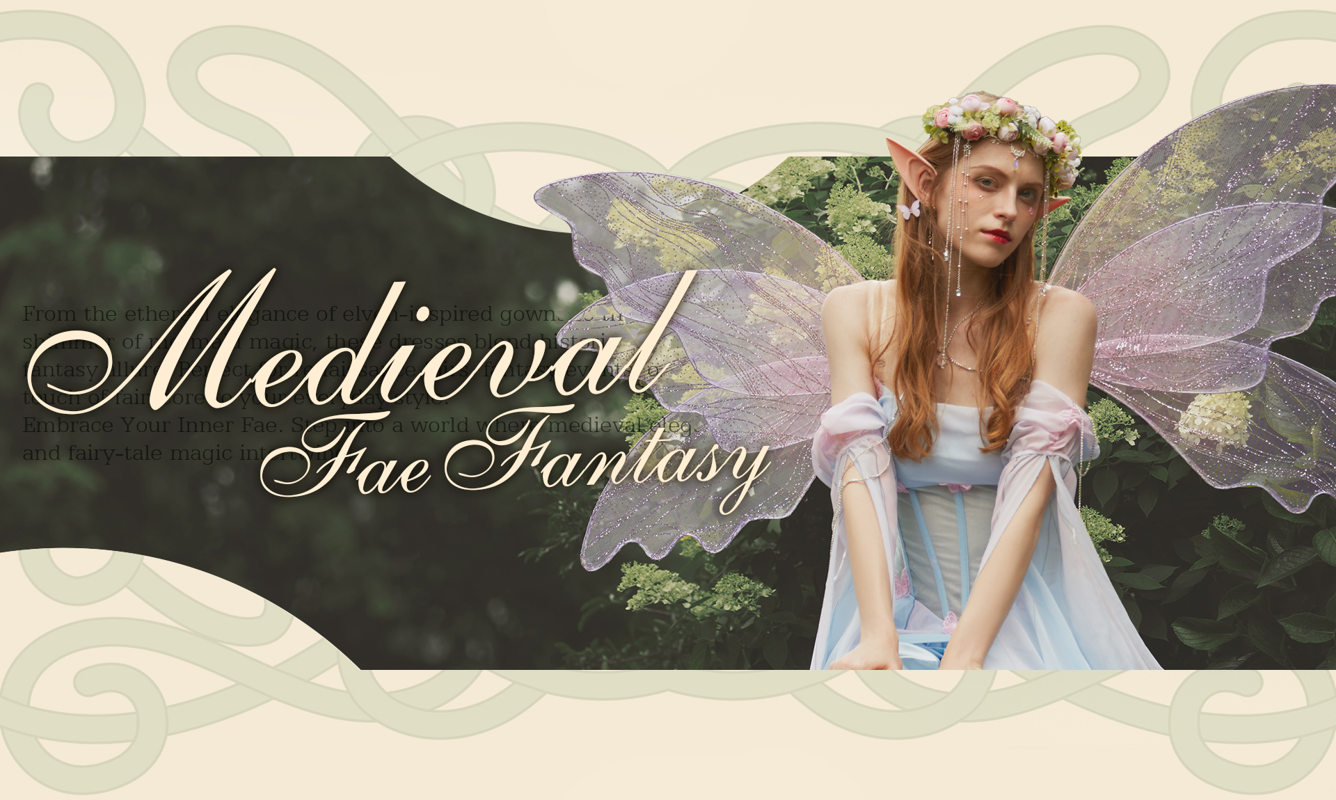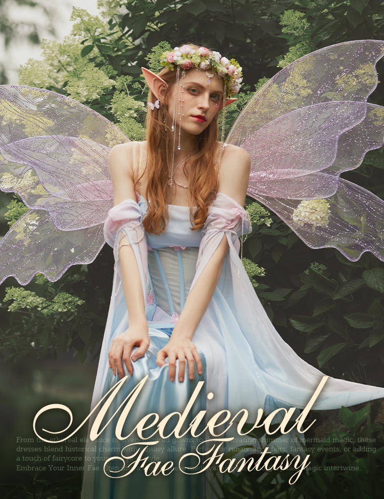 Medieval Vintage Butterfly Elf Style Dress Renaissance Fairy Blue Pink Irregular Dress with Sleeves