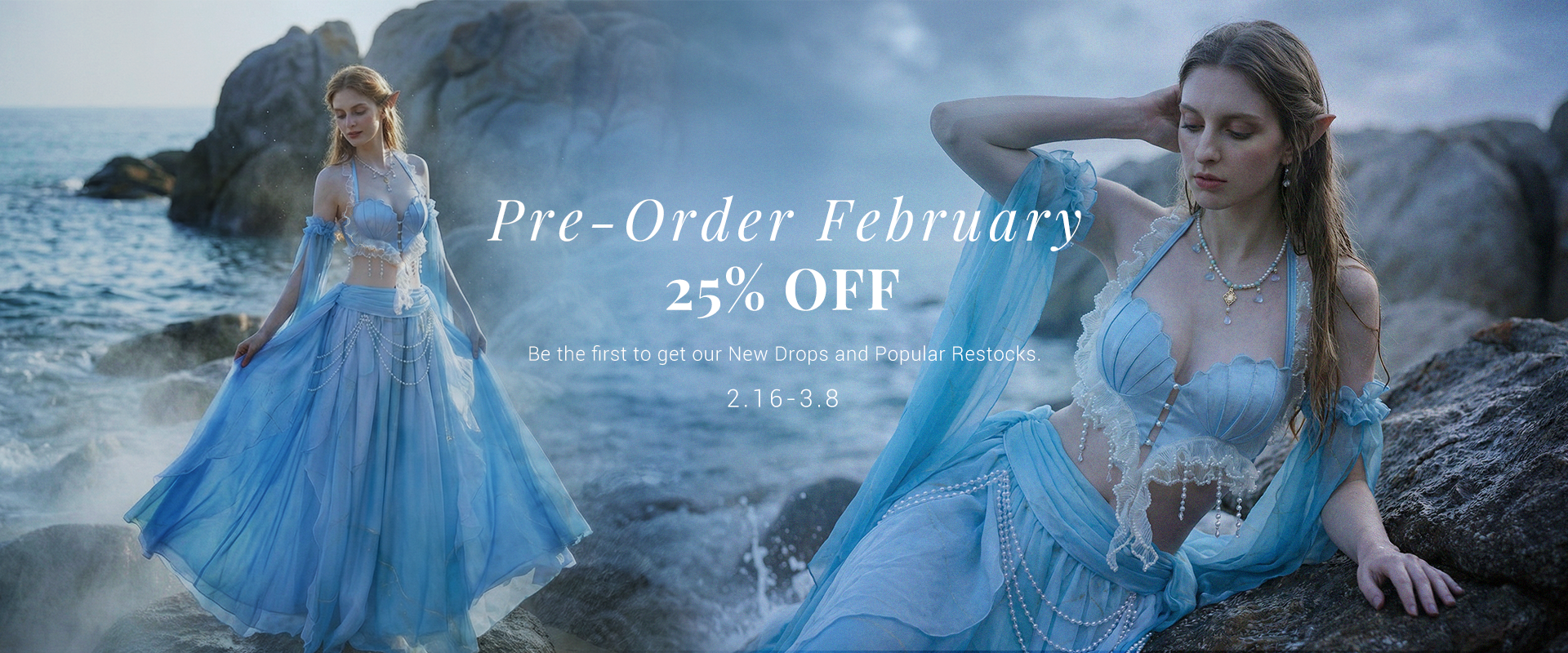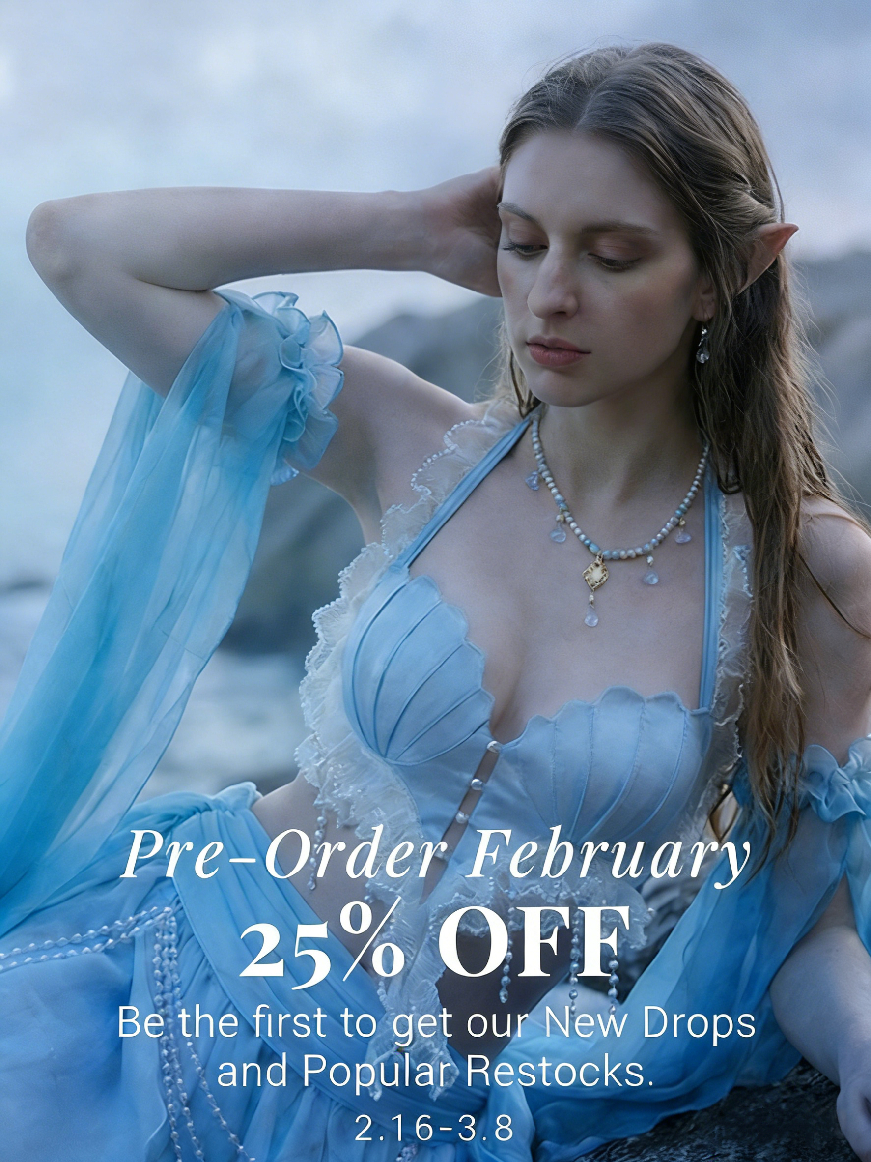 Medieval Gradient Blue Elf Style Shawl Retro Waistcoat And Train With Chain